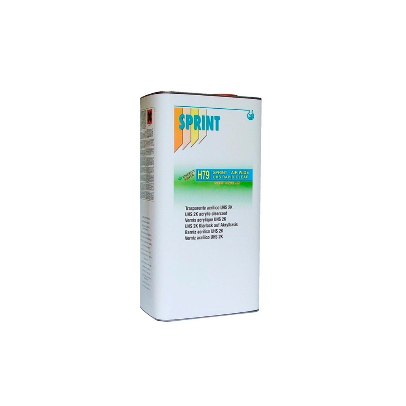 Sprint H79 UHS: Barniz Acrílico UHS, con VOC listo al uso inferior a 420 gr./l. Las características principales de este barniz son la rapidez de secado en profundidad, que permite el pulido después de apenas 3 – 3,5 hr. a 23°C, y la profundidad del acabado final que proporciona un brillo superior a barnices de la categoría de los UHS acrílicos más lentos de secado. Fácil de aplicar, gracias a la baja viscosidad, que permanece constante al menos durante 60 min., es ideal tanto para hacer piezas pequeñas como el pintado completo del automóvil.